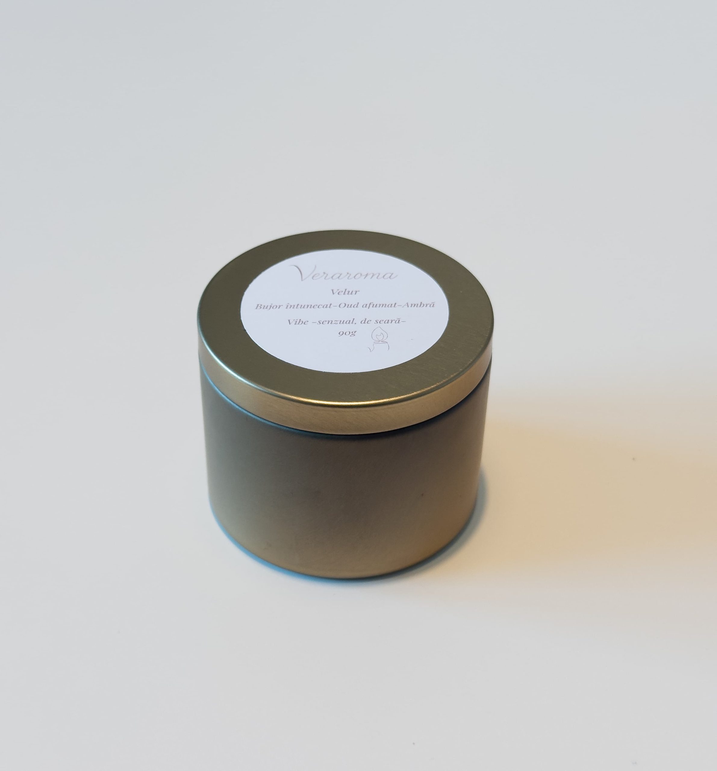 Lumânare parfumată Velur (90g), turnată manual din ceară naturală de cocos și rapiță. Un amestec senzual și misterios de bujor întunecat, oud afumat și ambră, creat special pentru a aduce o notă de lux, eleganță și relaxare profundă în serile tale de răsfăț.